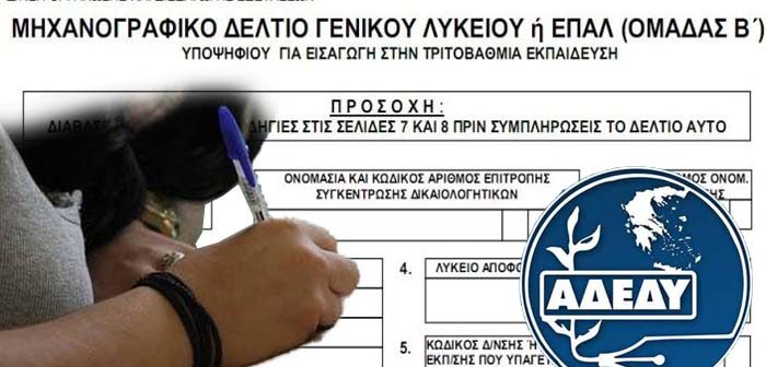 Η Εκτελεστική Επιτροπή της Α.Δ.Ε.Δ.Υ. ζητάει δίκαιη λύση στο ζήτημα που έχει δημιουργηθεί με ευθύνη των συντακτών του μηχανογραφικού δελτίου».