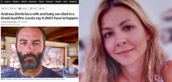 - Διαβάστε ολόκληρο το αφιέρωμα στον φονική πυρκαγιά στο Μάτι του δημοσιογράφου Eric Campbell αυστραλιανού δικτύου ABCnews τίτλο «Andreas Dimitriou’s wife and baby son died in a Greek bushfire. Locals say it didn’t have to happen» στα αγγλικά, πατώντας ΕΔΩ