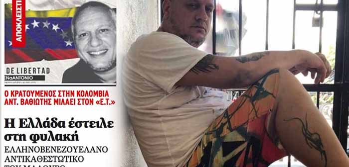 Όπως σημειώνει ο δικηγόρος του κ. Βαθιώτη, ο 43χρονος, πατέρας τριών παιδιών, με έντονη αντιπολιτευτική δράση κατά του Νικολά Μαδούρο, αυτή τη στιγμή κινδυνεύει να εκδοθεί στη Βενεζουέλα ενώ ήδη κρατείται σε φυλακές της Κολομβίας.