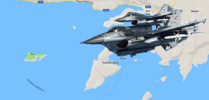 Πάνω από το Καστελλόριζο (Μέγιστη) και τη Στρογγύλη πέταξαν δυο Τουρκικά μαχητικά F16 νωρίτερα σήμερα το απόγευμα.