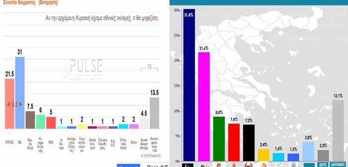 Pulse: Προβάδισμα 10,5% για την ΝΔ με 33%