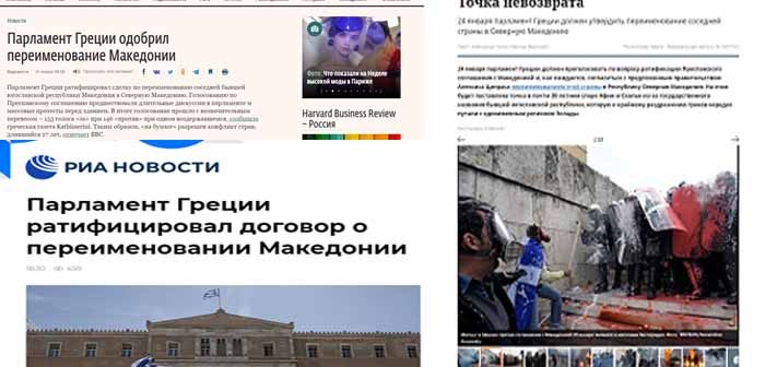 Όλα τα ρωσικά μέσα ενημέρωσης αναφέρονται εκτενώς στην απόφαση της Βουλής των Ελλήνων να κυρώσει την συμφωνία των Πρεσπών, επισημαίνοντας ότι κατ’ αυτόν τον τρόπο εγκρίθηκε η μετονομασία της Μακεδονίας σε Βόρεια Μακεδονία.