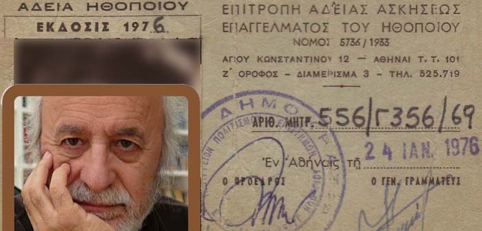 Για την ιστορία, θυμίζω (και αντιγράφω) πως ο νόμος 1158/1981—ΦΕΚ 127/13-5-1981 περί οργανώσεως και διοικήσεως σχολών Ανωτέρας Καλλιτεχνικής Εκπαιδεύσεως, Κρατικού Βραβείου Θεάτρου και καταργήσεως Αδείας Ασκήσεως Επαγγέλματος Ηθοποιού, αποφασίστηκε τον Μάιο του 1981 με υπογραφή του πρώην υπουργού Ανδρέα Ανδριανόπουλου. Να πούμε και τη λεπτομέρεια πως, επειδή τον Οκτώβριο του ’81 ανέβηκε στην εξουσία το ΠΑΣΟΚ, με την Μελίνα Μερκούρη στο ΥΠΠΟ, κακώς θεωρήθηκε πως η άδεια εξασκήσεως επαγγέλματος του ηθοποιού καταργήθηκε από τη Μελίνα. Απλώς, η υπουργός κράτησε αυτή την απόφαση…