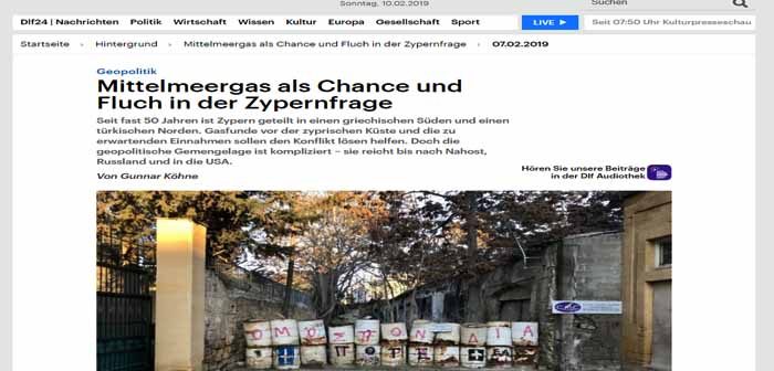 - Διαβάστε το πλήρες άρθρο του δημοσιογράφου Gunnar Köhne του γερμανικού εθνικού ραδιοφώνου που εδρεύει στην Κολωνία Deutschlandfunk (DLF) με τίτλο «Mittelmeergas als Chance und Fluch in der Zypernfrage», στα γερμανικά, πατώντας ΕΔΩ