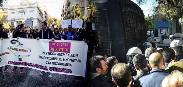 «Ζητήσαμε συνάντηση με τον πρωθυπουργό της χώρας για να θέσουμε τα μείζονα προβλήματα που αντιμετωπίζει η Δημόσια Υγεία και οι λιγοστοί εργασιακά εξουθενωμένοι εργαζόμενοι. […] Αντί συνάντησης μας “λιάνισαν” στο ξύλο τα ΜΑΤ. Τραυματίστηκαν συνάδελφοι οι οποίοι διακομίσθηκαν για πρώτες βοήθειες σε εφημερεύον νοσοκομείο» σημειώνει η ΠΟΕΔΗΝ για την εν λόγω κινητοποίηση.