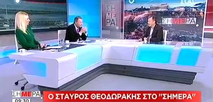 Μιλώντας στον τηλεοπτικό σταθμό ΣΚΑΪ ο Σταύρος Θεοδωράκης, μίλησε ακόμη για τους στόχους του Ποταμιού και για θέματα της επικαιρότητας.