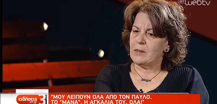 Στην εκπομπή της ΕΡΤ, «Focus», μίλησε η Μάγδα Φύσσα, η μητέρα του δολοφονημένου από τον χρυσαυγίτη Ρουπακιά, Παύλου Φύσσα, η οποία σε μία εκ βαθέων συνέντευξη, μίλησε για τον πόνο που βιώνει εκείνη και η οικογένειά της, μετά τον άδικο “χαμό” του γιου της, χαρακτηρίζοντας «κτήνη» και «αποβράσματα της κοινωνίας» τους δολοφόνους του Παύλου, ενώ εξήγησε πόσο δύσκολο είναι να έχει απέναντί της «αυτούς που σκότωσαν το παιδί μου»…