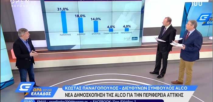 Αέρα νίκης για στον Γιώργο Πατούλη και κατάρρευση της Ρένας Δούρου δείχνει η δημοσκόπηση της Alco, που πραγματοποιήθηκε για λογαριασμό του Open.