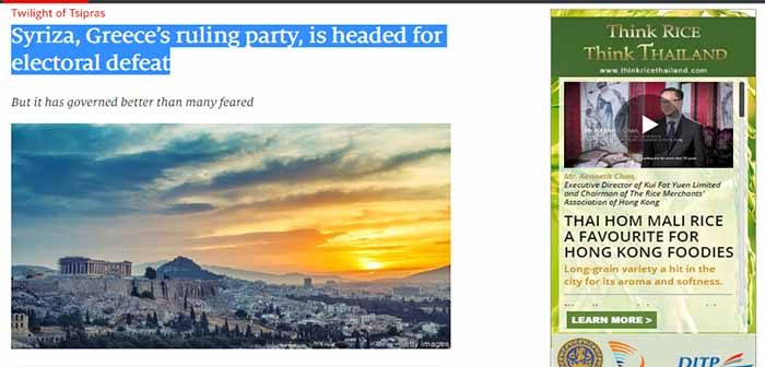 • Διαβάστε το πλήρες άρθρο του εβδομαδιαίου βρετανικού περιοδικού Τhe Economist με τίτλο «Syriza, Greece’s ruling party, is headed for electoral defeat» στα αγγλικά, πατώντας ΕΔΩ