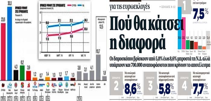 - Ευρωεκλογές 2019: Με τρία διαφορετικά σενάρια αποτυπώνεται η διαφορά ΣΥΡΙΖΑ και ΝΔ