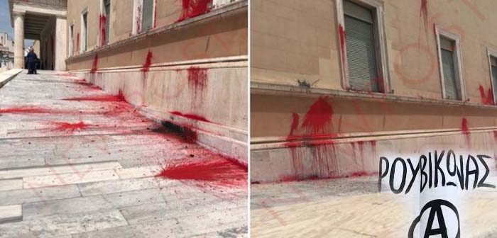Με απειλές απαντά ο Ρουβίκωνας στην επιβολή καταβολής εγγύησης για να αφεθεί ελεύθερος ο 36χρονος που συνελήφθη για συμμετοχή στην επίθεση με μπογιές στη Βουλή.