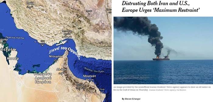 Μπορεί μεν οι ευρωπαϊκές κυβερνήσεις να θεωρούν το Ιράν υπεύθυνο για τις επιθέσεις εναντίον δεξαμενοπλοίων στον Κόλπο του Ομάν, όμως η καχυποψία τους προς την κυβέρνηση του Προέδρου Τραμπ, και της επιθετικής πολιτικής της έναντι της Τεχεράνης, τις ωθούν να μετρούν τα λόγια τους και να απευθύνουν εκκλήσεις για αποκλιμάκωση και «μέγιστη αυτοσυγκράτηση» γράφουν οι New York Times.
