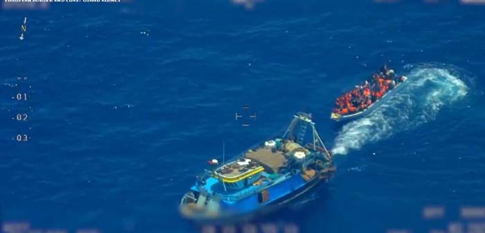 Απολύτως τίποτα δεν προδιαθέτει τον παρατηρητή ότι υπάρχει κάτι ύποπτο σε αυτό το σκάφος. Αλλά γιατί άραγε το ψαράδικο σέρνει το ξύλινο σκάφος; Αυτό μένει να απαντηθεί από το βίντεο της Frontex.