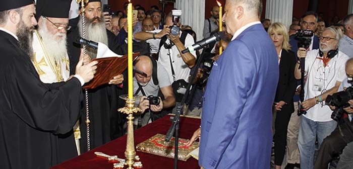 Σε πανηγυρικό κλίμα έγινε η τελετή ορκωμοσίας, του νέου περιφερειάρχη Αττικής, Γιώργου Πατούλη και των μελών του Περιφερειακού Συμβουλίου, στο Ζάππειο μέγαρο, από τον αρχιεπίσκοπο Ιερώνυμο.