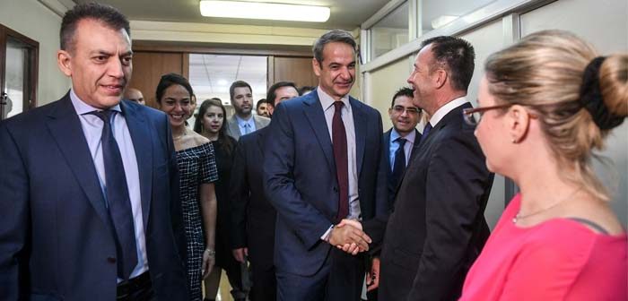 Ο κ. Μητσοτάκης, στην επίσκεψή του στο Υπουργείο Εργασίας και Κοινωνικών Υποθέσεων, συνοδευόταν από τον υφυπουργό παρά τω πρωθυπουργώ και κυβερνητικό εκπρόσωπο, Στέλιο Πέτσα, και είχε συνεργασία με τον υπουργό Γιάννη Βρούτση, τον υφυπουργό, αρμόδιο για θέματα Κοινωνικής Ασφάλισης, Νότη Μηταράκη και την υφυπουργό, αρμόδια για θέματα Πρόνοιας και Κοινωνικής Αλληλεγγύης, Δόμνα Μιχαηλίδου.