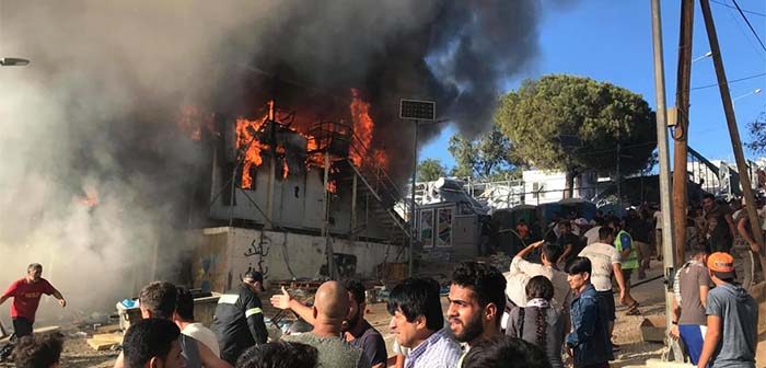 Από την αστυνομία αρχικά ανακοινώθηκαν τα εξής: «Αστυνομικές δυνάμεις επιχειρούν αυτή τη στιγμή στο Κέντρο Υποδοχής και Ταυτοποίησης της Μόριας στη Λέσβο, λόγω επεισοδίων που έχουν ξεσπάσει. Είχαν προηγηθεί δύο πυρκαγιές, η πρώτη την 16:45 ώρα περίπου σε απόσταση 400 περίπου μέτρων εξωτερικά του Κέντρου, η οποία κατασβέσθη από τις πυροσβεστικές δυνάμεις και η δεύτερη 20 περίπου λεπτά αργότερα εντός του ΚΥΤ, για την κατάσβεση της οποίας επιχειρούν πυροσβεστικές δυνάμεις. Υπάρχουν πληροφορίες αλλά δεν έχει μέχρι στιγμής εξακριβωθεί αν υπάρχουν θύματα».