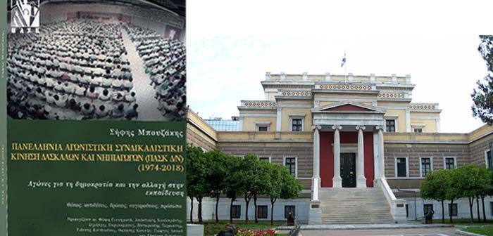 Η Δημοκρατική Συνεργασία Εκπαιδευτικών Πρωτοβάθμιας Εκπαίδευσης (ΔΗ.ΣΥ. ΠΕ), η Παιδαγωγική Εταιρεία Ελλάδος και η Ελληνική Εταιρεία Ιστορικών της Εκπαίδευσης σας προσκαλούν στην παρουσίαση του βιβλίου του ομ. Καθηγητή του Πανεπιστημίου Πατρών Σήφη Μπουζάκη, με τίτλο «Πανελλήνια Αγωνιστική Συνδικαλιστική Κίνηση Δασκάλων και Νηπιαγωγών (1974 – 2018) Αγώνες για τη δημοκρατία και την αλλαγή στην εκπαίδευση – Θέσεις, αντιθέσεις, δράσεις, συγκρούσεις, πρόσωπα», που αναφέρεται στην ιστορία της Δημοκρατικής Παράταξης των εκπαιδευτικών της Πρωτοβάθμιας Εκπαίδευσης (ΠΑΣΚ/ΔΝ)