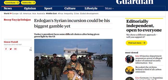 - Διαβάστε την πλήρη ανάλυση του δημοσιογράφου Simon Tisdall αγγλικής εφημερίδας The Guardian με τίτλο «Erdoğan’s Syrian incursion could be his biggest gamble yet» στα αγγλικά, πατώντας ΕΔΩ