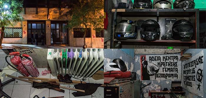 Επιπλέον, οι αστυνομικοί βρήκαν στους χώρους της ΑΣΟΕΕ πυροσβεστήρες, διαρρηκτικά εργαλεία, φυλλάδια αναρχικού περιεχομένου και κομμάτια από μάρμαρα και πέτρες που χρησιμοποιούνται σε επιθέσεις εναντίον των αστυνομικών δυνάμεων.