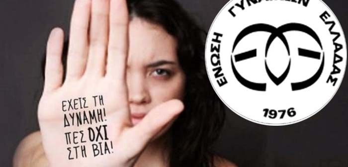 Το Παράρτημα Αθηνών της Ένωσης Γυναικών Ελλάδος (E.Γ.Ε.) σας προσκαλεί την Πέμπτη 5 Δεκεμβρίου 2019 στις 5 μμ στην εκδήλωση με θέμα: «Η Βία κατά των Γυναικών»