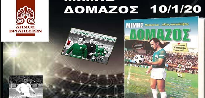 Ο Δήμος Βριλησσίων διοργανώνει την Παρασκευή 10 Ιανουαρίου 2020, τιμητική εκδήλωση – παρουσίαση του λευκώματος «Μυστικά και άλλες …αποκαλύψεις» για το θρύλο του ελληνικού ποδοσφαίρου Μίμη Δομάζο.