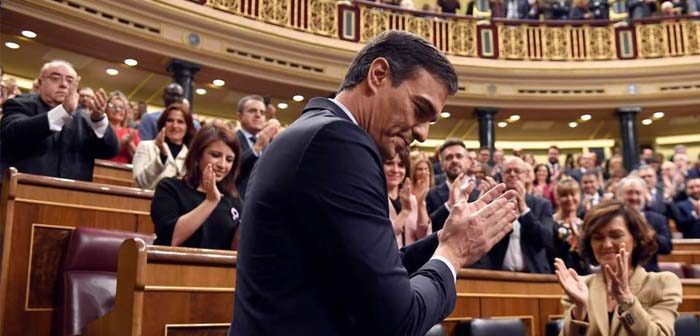Έπειτα από σχεδόν έναν χρόνο υπηρεσιακών κυβερνήσεων, ο Σάντσεθ κέρδισε για δύο ψήφους την απλή πλειοψηφία που χρειαζόταν, χάρη στη στήριξη βουλευτών από μικρότερα περιφερειακά κόμματα.