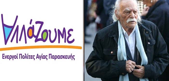 H Ομάδα Ενεργών Πολιτών «ΑΛΛΑΖΟΥΜΕ», αναγνωρίζει και τιμά τους μακροχρόνιους αγώνες του μεγάλου αγωνιστή Μανώλη Γλέζου, που έφυγε πρόσφατα από κοντά μας, για την Ελευθερία και τη Δημοκρατία, καθώς και την προσφορά του στην κεντρική πολιτική και αυτοδιοικητική σκηνή.