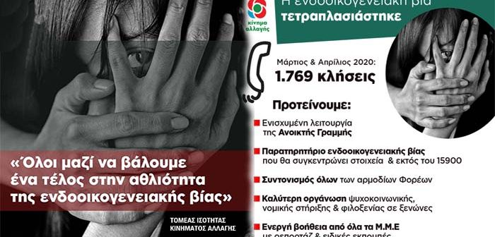 «Από την πρώτη στιγμή του εγκλεισμού, το Κίνημα Αλλαγής υπογράμμισε την ανάγκη λήψης εκτάκτων μέτρων κατά της ενδοοικογενειακής βίας κατά την περίοδο του εγκλεισμού» αναφέρει χαρακτηριστικά.