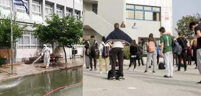 Από εξειδικευμένο συνεργείο και με πιστοποιημένες διαδικασίες είχε προηγηθεί καθαρισμός και απολύμανση σε όλους τους εσωτερικούς χώρους και αίθουσες των σχολείων.