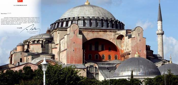 Λίγο μετά την απόφαση του τουρκικού ΣτΕ, η οποία ακύρωσε το κυβερνητικό διάταγμα του 1934, με το οποίο είχε μετατραπεί σε μουσείο η Αγιά Σοφιά, ο Ερντογάν έβαλε την υπογραφή του σε ένα νέο διάταγμα με το οποίο η Αγιά Σοφιά γίνεται τζαμί.