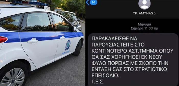 Από τη Διεύθυνση Δίωξης Ηλεκτρονικού Εγκλήματος της Ελληνικής Αστυνομίας διενεργείται έρευνα σχετικά με το παρακάτω μήνυμα ( sms ),που αποστέλλεται σε κινητά τηλέφωνα, καλώντας τους πολίτες να παρουσιαστούν στο κοντινότερο Αστυνομικό Τμήμα για δήθεν χορήγηση Φύλλου Πορείας από το Στρατό.