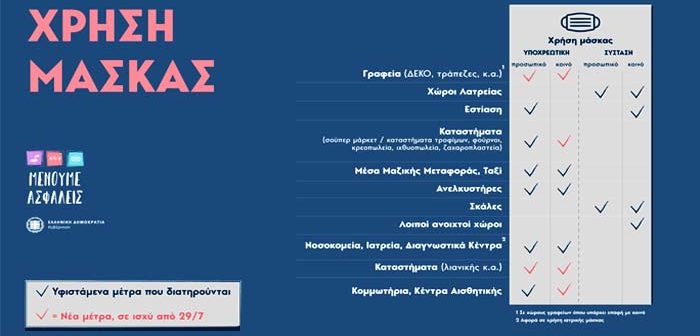 Από αύριο, Τετάρτη 29 Ιουλίου, επεκτείνεται η υποχρεωτική χρήση μάσκας για εργαζομένους και κοινό.