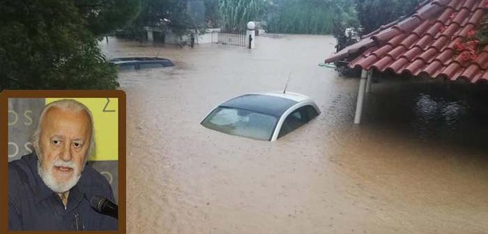 Κάτι τέτοιο συμβαίνει κάθε φορά που ο άνθρωπος δεν υπολογίζει πως το νερό, εκτός από την θάλασσα, τους ποταμούς και τα πηγάδια, μάς έρχεται και από τον ουρανό· όχι από τον καλό θεούλη, αλλά, σύμφωνα με τις καιρικές συνθήκες, άλλοτε ποτίζει ήρεμα τη Γη, το χώμα, τα δέντρα, τα φυτά, βρέχει δρόμους, στέγες σπιτιών κι άλλοτε μετατρέπεται σε ορμητικό χείμαρρο και ξεσπάει όπου βρει, με μεγάλη δύναμη, παρασέρνοντας ό,τι βρει μπροστά του…