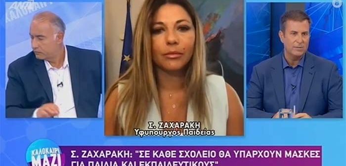 «Είμαστε απόλυτα έτοιμοι για το άνοιγμα των σχολείων, έχουν γίνει όλα όσα πρέπει έγκαιρα», είπε η Υφυπουργός Παιδείας, Σοφία Ζαχαράκη.