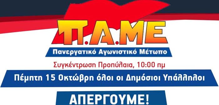 Όλοι και όλες στην απεργία 15 Οκτώβρη, 10:00 πμ, Προπύλαια