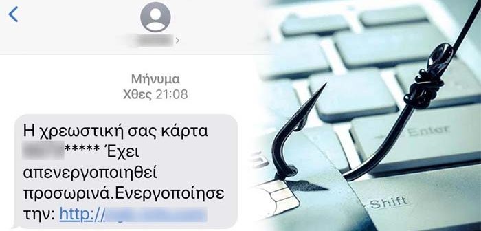 Το θύμα έλαβε μήνυμα (sms) στο κινητό του τηλέφωνο, που εμφανιζόταν ως αποστολέας τράπεζα και τον ενημέρωνε δήθεν ότι η χρεωστική του κάρτα έχει απενεργοποιηθεί και θα έπρεπε να ενεργοποιηθεί εκ νέου.