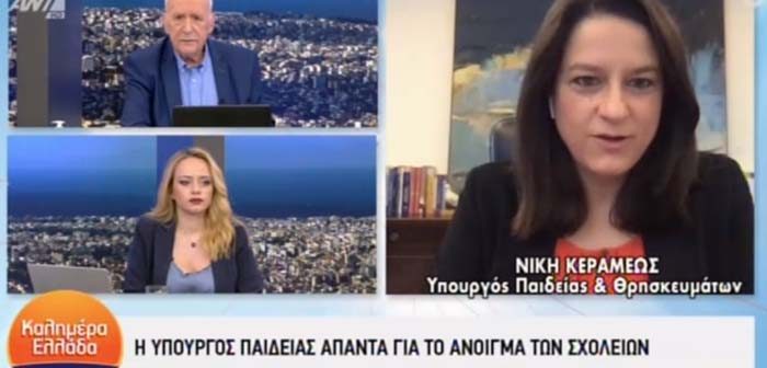 Η κυρία Κεραμέως παρουσιάζοντας τα μέτρα για το άνοιγμα των σχολείων σημείωσε ότι θα υπάρχει δυνατότητα για διαφορετική ώρα έναρξης και λήξης των μαθημάτων, προκειμένου να μην υπάρξει συνωστισμός μαθητών, γονέων και κηδεμόνων.