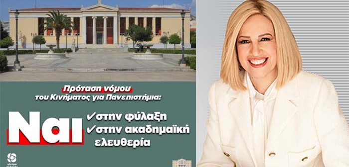 Πρόταση νόμου για τη Φύλαξη και προστασία των Ανωτάτων Εκπαιδευτικών Ιδρυμάτων (ΑΕΙ) κατέθεσε η Κοινοβουλευτική Ομάδα του Κινήματος Αλλαγής, με επικεφαλής τη Φώφη Γεννηματά, μόλις λίγες ώρες πριν τη διεξαγωγή του πανεκπαιδευτικού συλλαλητηρίου.