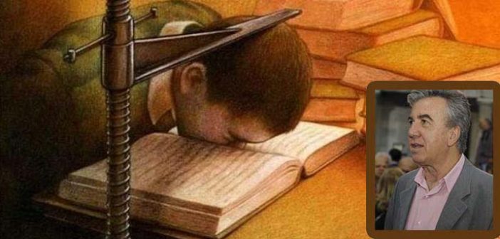Το όλο πεδίο είναι αυστηρά οριοθετημένο. Τίποτα εκτός αυτού δεν μπορεί να τεθεί – είναι εκτός θέματος! Και το ερώτημα που γεννάται από μόνο του, από την καταστατική ίδρυση και θεσμοποίηση της κρατικής και εθνικής εκπαίδευσης και του σχολείου, θα συζητηθεί ποτέ; Θέλουμε παιδεία και μόρφωση; Ή μόνο χρησιμοθηρική προσέγγιση της εκπαίδευσης με βάση τις επιταγές της οικονομίας; Υπάρχει και το παράγωγο ερώτημα. Θέλουμε ένα σχολείο πολιτισμού με ανθρωπιστικό αξιακό φορτίο και διαπαιδαγωγικό περιεχόμενο;