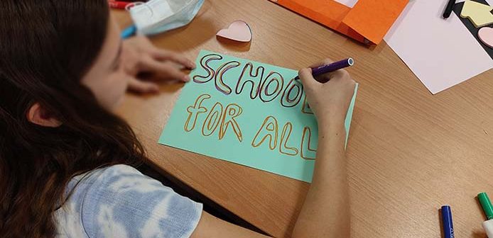 To έργο “Σχολεία για Όλους – Συμπερίληψη Παιδιών Προσφύγων στα Ελληνικά Σχολεία” είναι ένα καινοτόμο, τριετές πρόγραμμα που θέτει ως στόχο την ενίσχυση του σχολικού δημοκρατικού πολιτισμού. Προσφέρει επιμόρφωση και διαρκή υποστήριξη σε διευθυντές/διευθύντριες και εκπαιδευτικούς σχολείων με τάξεις υποδοχής, καθώς και στους γονείς των μαθητών για θέματα που αφορούν στη δημοκρατική ιδιότητα του πολίτη, τη συμπερίληψη στο εκπαιδευτικό περιβάλλον και τα ανθρώπινα δικαιώματα.