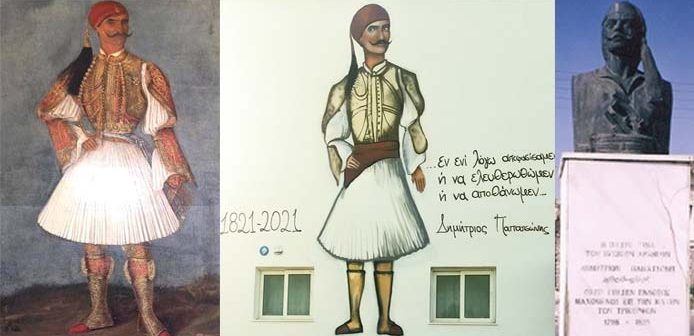 Ο Δημήτρης Παπατσώνης (1798-1825). Ο Δημήτρης Παπατσώνης είχε γεννηθεί στο χωριό Ναζήρι (Εύα) του σημερινού δήμου Μεσσήνης την περίοδο της τουρκοκρατίας. Πολέμησε στο Βαλτέτσι, στην πολιορκία της Τρίπολης, στα Δερβενάκια και σε πολλές ακόμη μάχες. Έγινε μέλος της Πελοποννησιακής Γερουσίας. Το 1824 φυλακίστηκε μαζί με το Θεόδωρο Κολοκοτρώνη στην Ύδρα γιατί θεωρήθηκε εχθρός της κυβέρνησης Κουντουριώτη. Μετά την απελευθέρωσή του συνέχισε τον απελευθερωτικό αγώνα. Σκοτώθηκε στα Τρίκορφα, το 1825, πολεμώντας τα στρατεύματα του Ιμπραήμ.