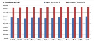 | Τρίτη | 30/3/21 | 479 | 531 | -52 | 54,41% | 84,35% |