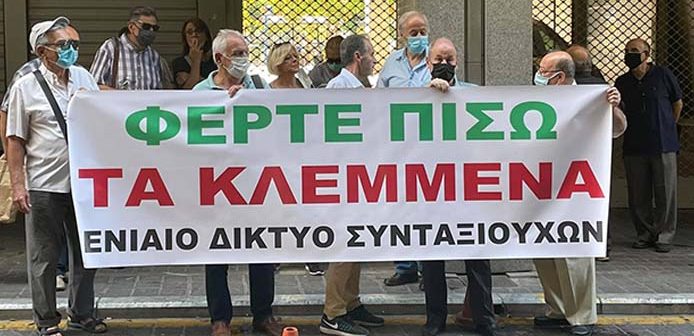 Οι συνταξιούχοι, που πλήρωσαν με «αιματηρές» περικοπές τη δεκαετή οικονομική κρίση, δεν ανέχονται άλλο την αδιαφορία του Οικονομικού Επιτελείου. Η φράση «φέρτε πίσω τα κλεμμένα» που ακούστηκε πολλές φορές κατά τη σημερινή συγκέντρωση, συμπυκνώνει την αγανάκτησή τους. Έλεος πια!