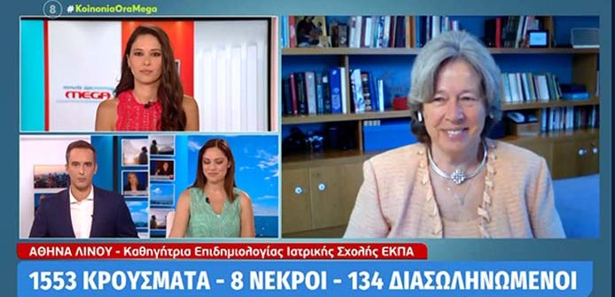 Μιλώντας στο MEGA και την εκπομπή «Κοινωνία Ώρα MEGA», η κ. Λινού τόνισε «Ναι μεν ο θάνατος στους ηλικιωμένους είναι πιο συχνός, αλλά και αρκετοί από τους νέους που θα νοσήσουν, θα έχουμε και εκεί θανάτους. Και δεν θα είναι αναγκαστικά θάνατοι μεταξύ ατόμων με υποκείμενο νόσημα. Αν μια κοπέλα νοσήσει ενώ είναι έγκυος, έχει τριπλάσια πιθανότητα να χάσει τη ζωή της, αν δεν ήταν έγκυος. Για αυτό πρέπει να εμβολιαστούμε όλοι».