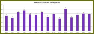 Οι νέοι θάνατοι ασθενών με COVID-19 είναι 39, ενώ από την έναρξη της επιδημίας έχουν καταγραφεί συνολικά 14.394 θάνατοι. Το 95.4% είχε υποκείμενο νόσημα ή/και ηλικία 70 ετών και άνω.