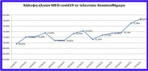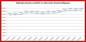 Στον παρακάτω πίνακα βλέπουμε τις εισαγωγές και τα εξιτήρια πανελλαδικώς, καθώς και την κάλυψη των απλών κλινών Covid, αλλά και κλινών ΜΕΘ Covid.