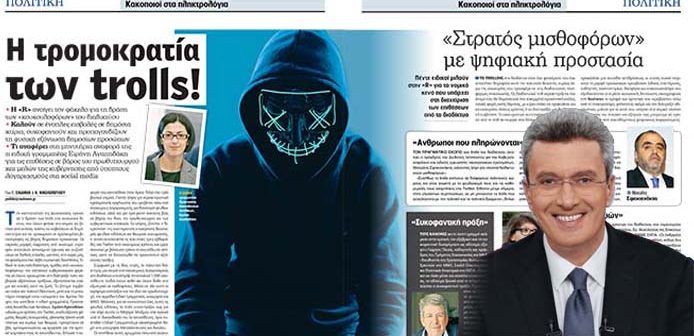 Υπενθυμίζεται ότι, πως το Σαββατοκύριακο η εφημερίδα Real News σε ρεπορτάζ των Γ. ΣΙΑΔΗΜΑ, Κ. ΝΙΚΟΛΟΠΟΥΛΟΥ αναφέρθηκε στη «δράση των ‘’κουκουλοφόρων’’ του διαδικτύου, που έχει προκαλέσει την κινητοποίηση της Δικαιοσύνης. Τα trolls στα κοινωνικά δίκτυα έχουν φτάσει στο σημείο να ζητούν από απλούς πολίτες να εισβάλλουν σε δημόσια κτίρια και να προχωρούν σε οργανωμένες βιαιοπραγίες εις βάρος δημοσίων προσώπων. Οι ακραίες μορφές έκφρασης από ανώνυμα «προφίλ» αποτελούν αντικείμενο έρευνας και συζητήσεων σε διεθνές επίπεδο, ωστόσο, στη χώρα μας, το φαινόμενο έχει λάβει εκρηκτικές διαστάσεις…»