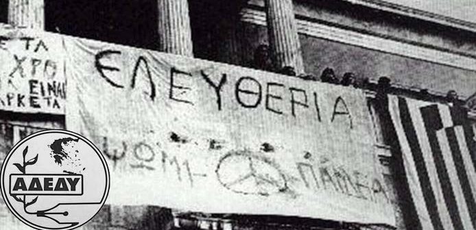Η Εκτελεστική Επιτροπή της Α.Δ.Ε.Δ.Υ., πιστή στα οράματα των αγωνιστών του Πολυτεχνείου, καλεί τους εργαζόμενους στο Δημόσιο να συνεχίσουν ανυποχώρητοι τον αγώνα για την υπεράσπιση των δικαιωμάτων και των κατακτήσεων τους και να συμμετάσχουν μαζικά και αγωνιστικά στις εκδηλώσεις τιμής και μνήμης για τους ηρωικούς αγωνιστές της εξέγερσης της 17ης Νοέμβρη 1973, καθώς και στην πορεία, που θα πραγματοποιηθεί την Τετάρτη, 17 Νοεμβρίου 2021, προς την Αμερικάνικη Πρεσβεία (16:30, στην Πλατεία Κλαυθμώνος), αλλά και στις εκδηλώσεις μνήμης σε άλλες πόλεις της χώρας.