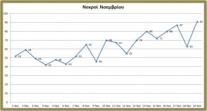 Σε ότι αφορά τον αριθμό των συμπολιτών μας που έχασαν τη ζωή τους σήμερα καταγράφονται 91 νεκροί, 28 περισσότεροι από χθες (63), 4 περισσότεροι από προχθές (87) και 11 περισσότεροι από αντιπροχθές (80).
