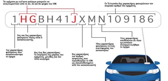Ο σειριακός αριθμός που χαρακτηρίζει κάθε όχημα έχει συγκεκριμένη λογική τοποθέτησης των 17 ψηφίων και με σωστή ανάγνωσή του θα ανακαλύψετε πολλές λεπτομέρειες για το όχημά σας. Για την σωστή αποκωδικοποίησή του, δείτε την παραπάνω φωτογραφία.